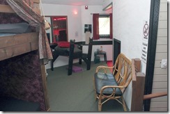 Looking down the hall between the bunk beds and the group area you see the “Frog Chair”.
